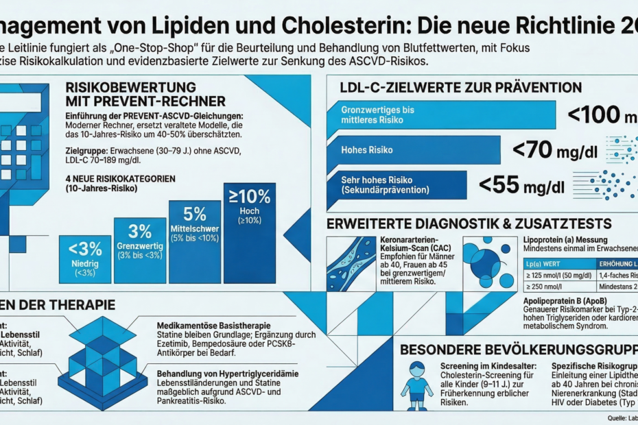 Was ist Laktatdehydrogenase (LDH)? Die Laktatdehydrogenase (LDH) ist ein Enzym, das in nahezu allen Körperzellen vorkommt. Es spielt eine zentrale Rolle im Energiestoffwechsel: LDH katalysiert die reversible Umwandlung von Pyruvat zu Laktat (Milchsäure) und umgekehrt, wobei NAD?/NADH beteiligt ist. Dies ist besonders wichtig bei anaerober (sauerstoffarmer) Energiegewinnung in Zellen. LDH liegt in fünf Isoenzymen (Varianten) vor, die sich aus zwei Untereinheiten (H-Typ für Herz, M-Typ für Muskel) zusammensetzen: Im Blutserum gesunder Menschen ist LDH nur in geringer Konzentration vorhanden, da das Enzym intrazellulär bleibt. Wird es im Labor gemessen, dient es als unspezifischer Marker für Zellschäden oder Zelluntergang (Nekrose oder verstärkter Zellumsatz). Bei Zellschädigung tritt LDH aus den Zellen aus und gelangt ins Blut. Normwerte (Referenzbereiche) Die Normalwerte für die Gesamt-LDH im Serum sind methoden- und laborabhängig. Typische Bereiche bei Messung bei 37 °C (IFCC-Standard): Genauere Werte sollten immer dem…