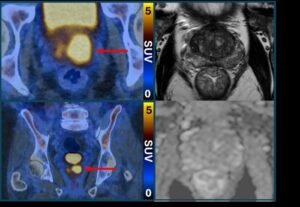 Klinisch signifikanter Prostatakrebs (links, PSMA-PET/CT) trotz normalem MRT (rechts)